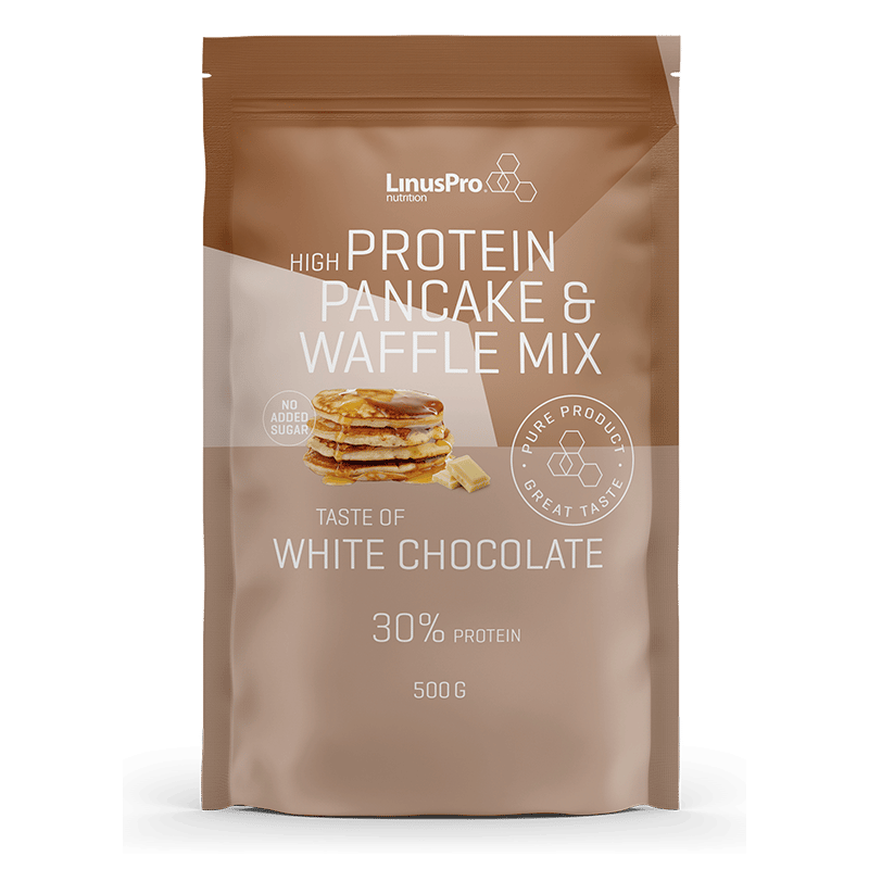 Vi har fundet Linuspro Protein Pancake Waffle Mix – White Chocolate G – Pandekageblanding fra Linuspro hos Muscle House i kategorien Pandekageblanding. LinusPro Protein Pancake & Waffle Mix – White Chocolate (500g) Proteinrig og smagsfuld pandekageblanding fra LinusPro. Hver dosering indeholder kun 337 kalorier, hele 30% protein og er uden tilsat sukker. Højt proteinindhold Fantastisk smag Hver doserin