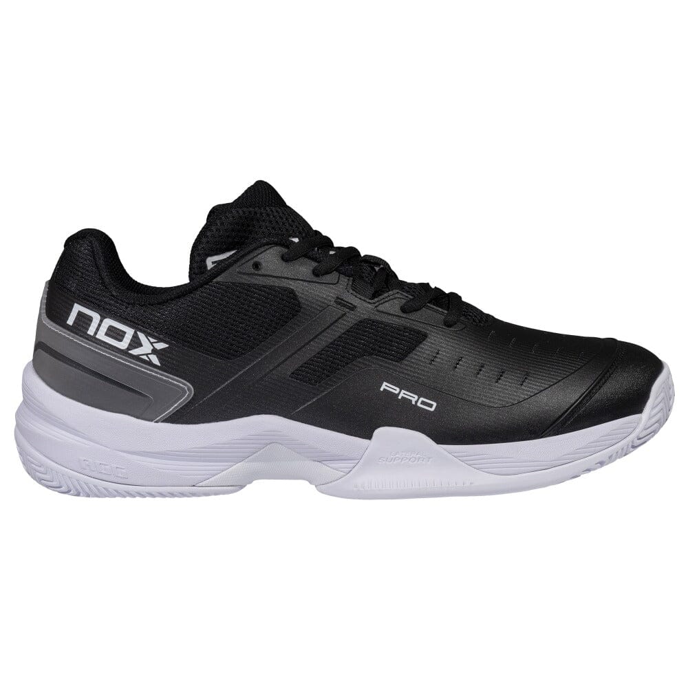 Vi har fundet Nox At Pro Black White fra Nox hos Padel Specialist i kategorien Padelsko. Teknologier i NOX AT10 Pro padelskoen: AGG: AGG-teknologien (Advanced Gravity Geometry) giver en øget "drop" mellem hæl og tå, som gør det lettere at indtage klar-positionen og komme hurtigt fra start. Samtidig reduceres belastningen på lægmuskl