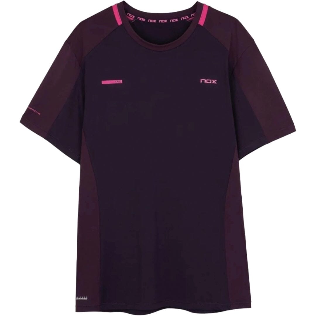 Vi har fundet Nox Pro T-shirt Blackberry fra Nox hos Padel Specialist i kategorien T-shirt. Høj kvalitet og elegant design. En favorit hos verdensstjernen Agustin Tapia. Materiale: 92% polyester og 8% elastanStørrelse: Almindelig pasform. Modellen er 185 cm og bruger str. M Findes også i en model hvor den fader fra pink til denne Blackberry farv