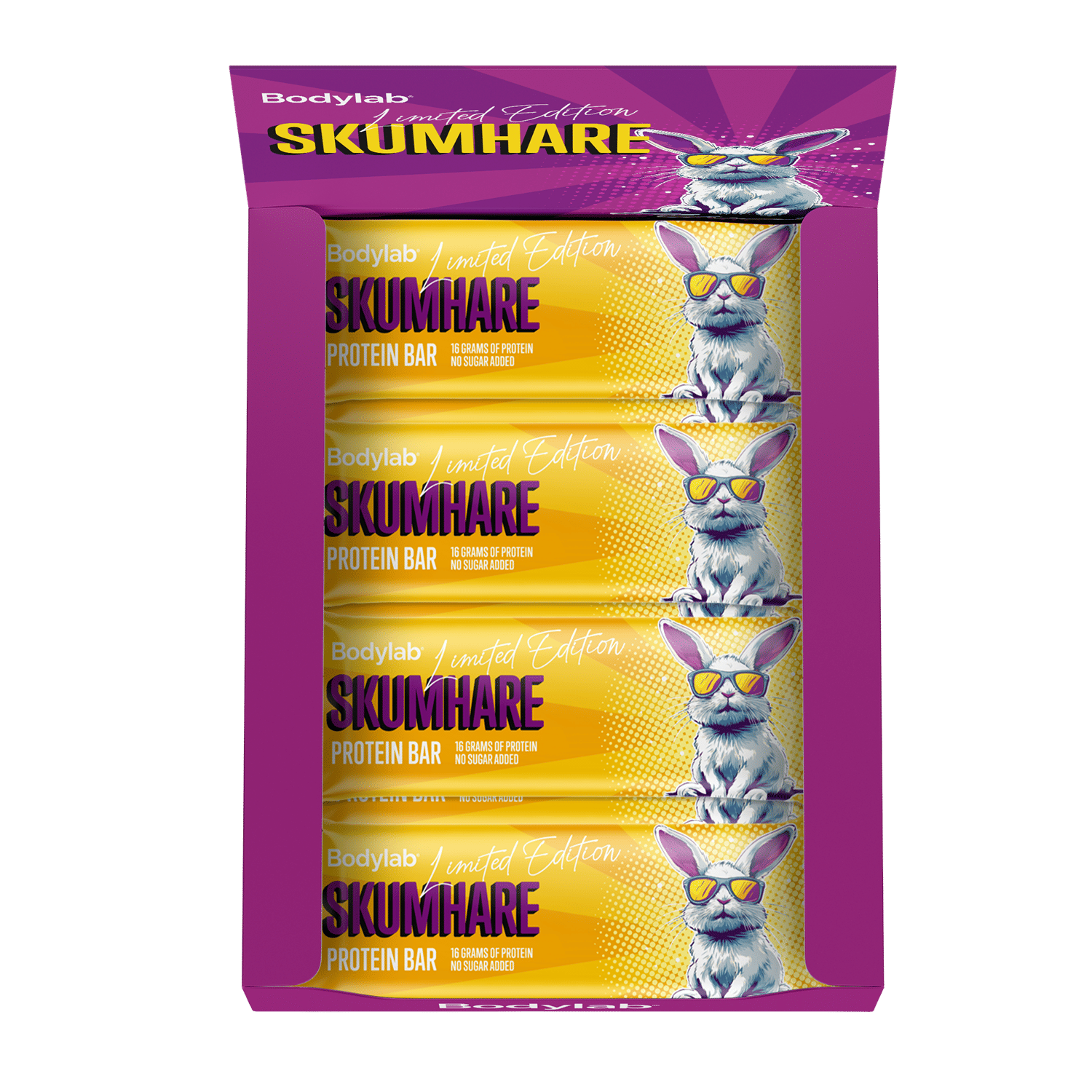 Vi har fundet Protein Bar X G – Skumhare fra Bodylab hos Bodylab i kategorien Muskelopbygning Proteinbarer. Skumhare Protein Bar har en blød og luftig kerne med 16 gram protein og 0 gram tilsat sukker.